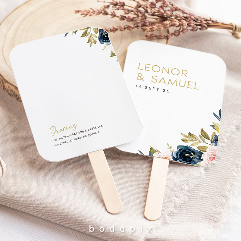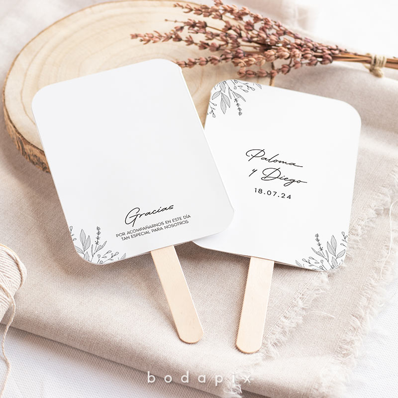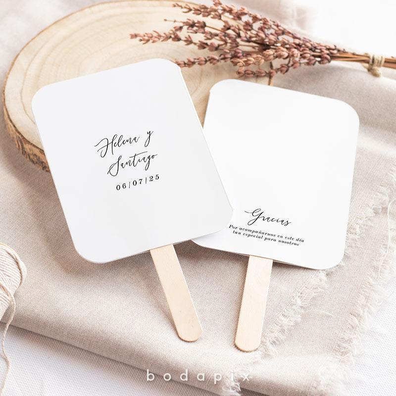 En Bodapix solemos decir que cada detalle cuenta. Precisamente por eso, te ofrecemos la posibilidad de tener pai pais personalizados para tu boda. No solo irán con vuestros nombres y la fecha de la boda, sino que además podrás incluir un bonito mensaje en el reverso. Seguro que tus amigos y familiares quedan encantados con estos originales abanicos para bodas.