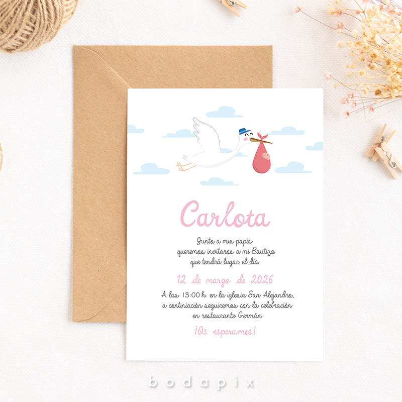 Invitación Cigüeña rosa