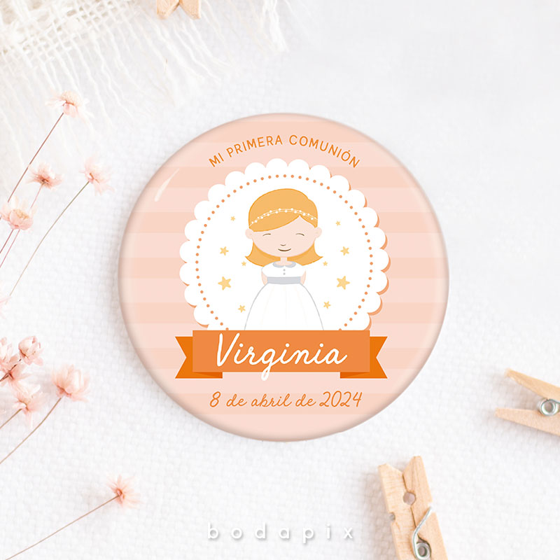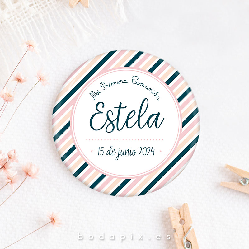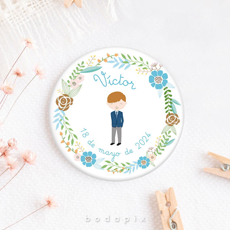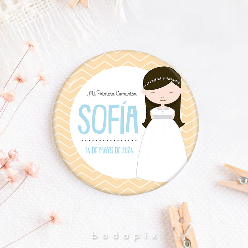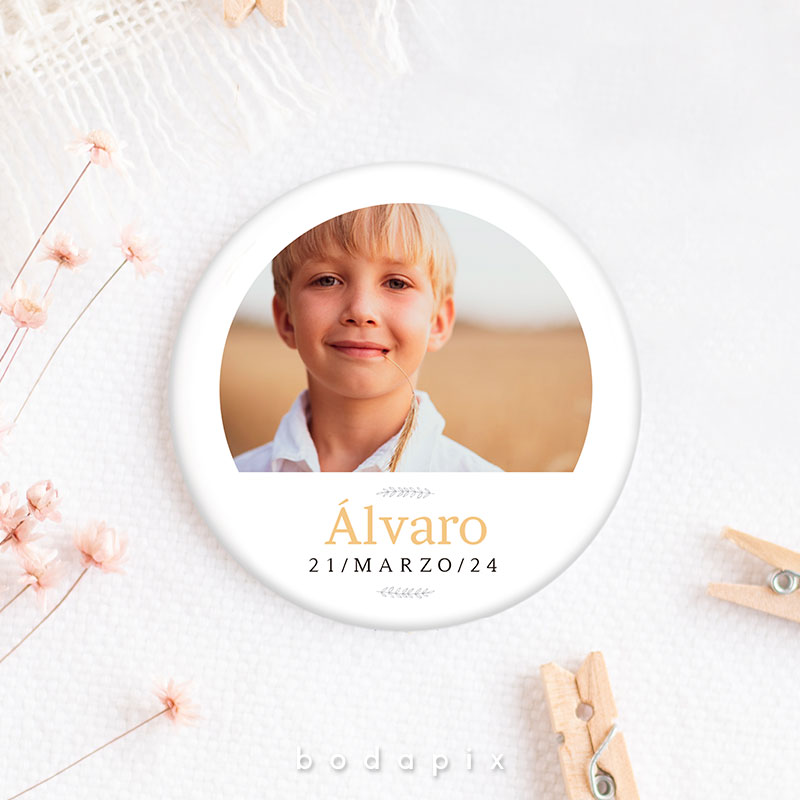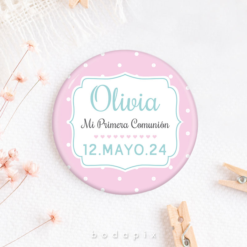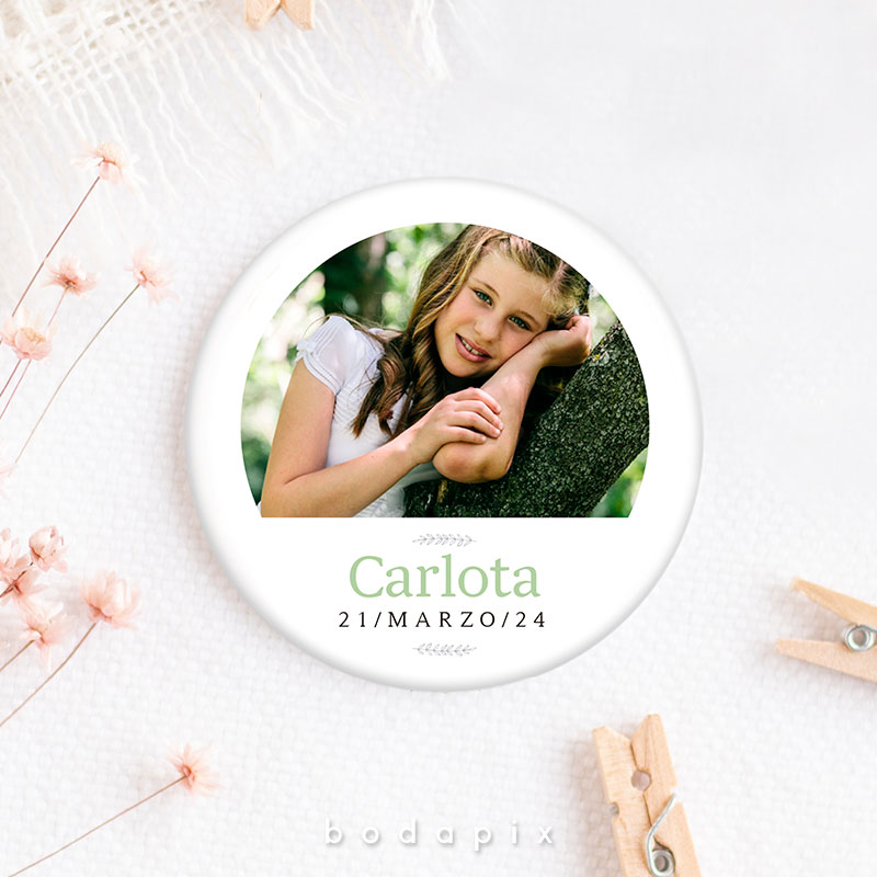 Un recuerdo encantador y personalizado que resalta en las celebraciones de primera comunión es la chapa personalizada. Estos pequeños objetos, típicamente hechos de metal o plástico, se diseñan meticulosamente con imágenes, textos y adornos que capturan la esencia de este evento significativo. Ya sea mostrando imágenes del festejado en su traje de comunión, incorporando citas inspiradoras o fechas destacadas, cada chapa se convierte en un símbolo único de la jornada.
