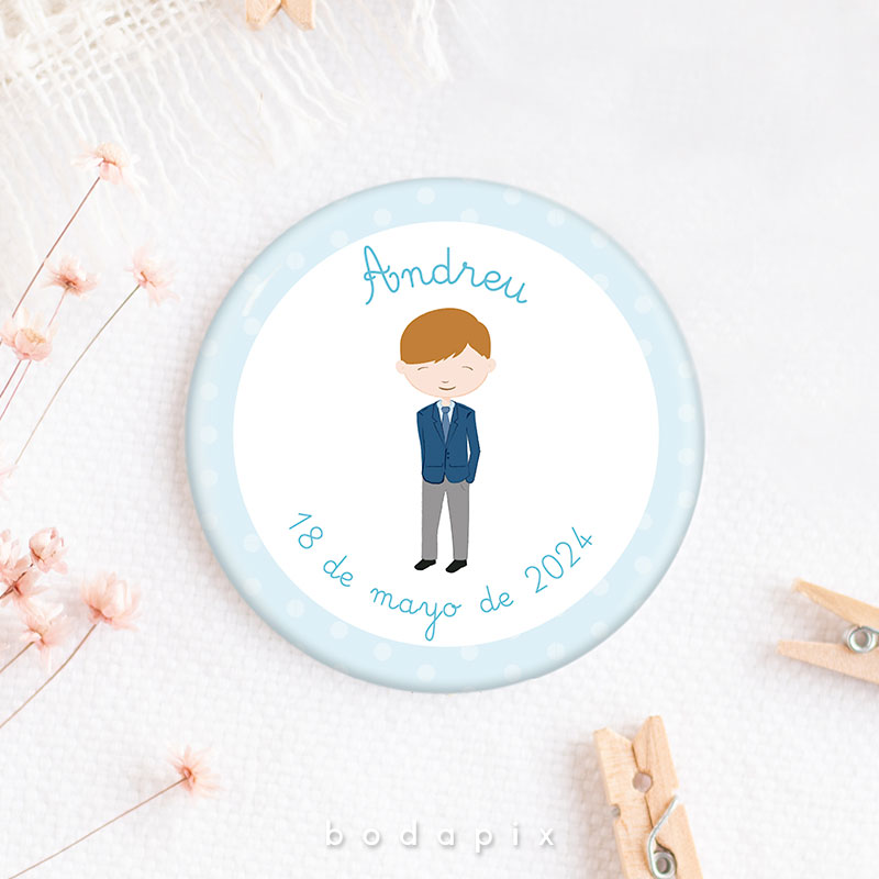 Cada chapa puede incluir desde ilustraciones tiernas y coloridas hasta frases significativas o datos del evento, como la fecha y el nombre del protagonista. Bodapix ofrece una amplia gama de diseños preestablecidos que se pueden adaptar según las preferencias de cada cliente, o bien, los clientes pueden optar por crear un diseño totalmente a medida. Fabricadas con materiales de calidad, las chapas de Bodapix son duraderas y pueden utilizarse como detalle decorativo, pin en la ropa, o incluso como parte de juegos y actividades durante la fiesta de comunión.