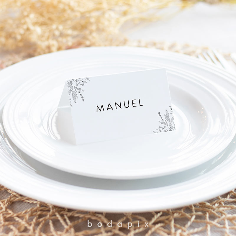 Las tarjetas marcasitios Bodapix no solo van personalizadas con los nombres de tus invitados, sino que también incluyen vuestros nombres y la fecha de la boda. ¡Así todo seguirá la misma armonía! También puedes utilizar la otra cara de los sittings para bodas para dejar un breve mensaje de agradecimiento. ¡Seguro que lo valoran!